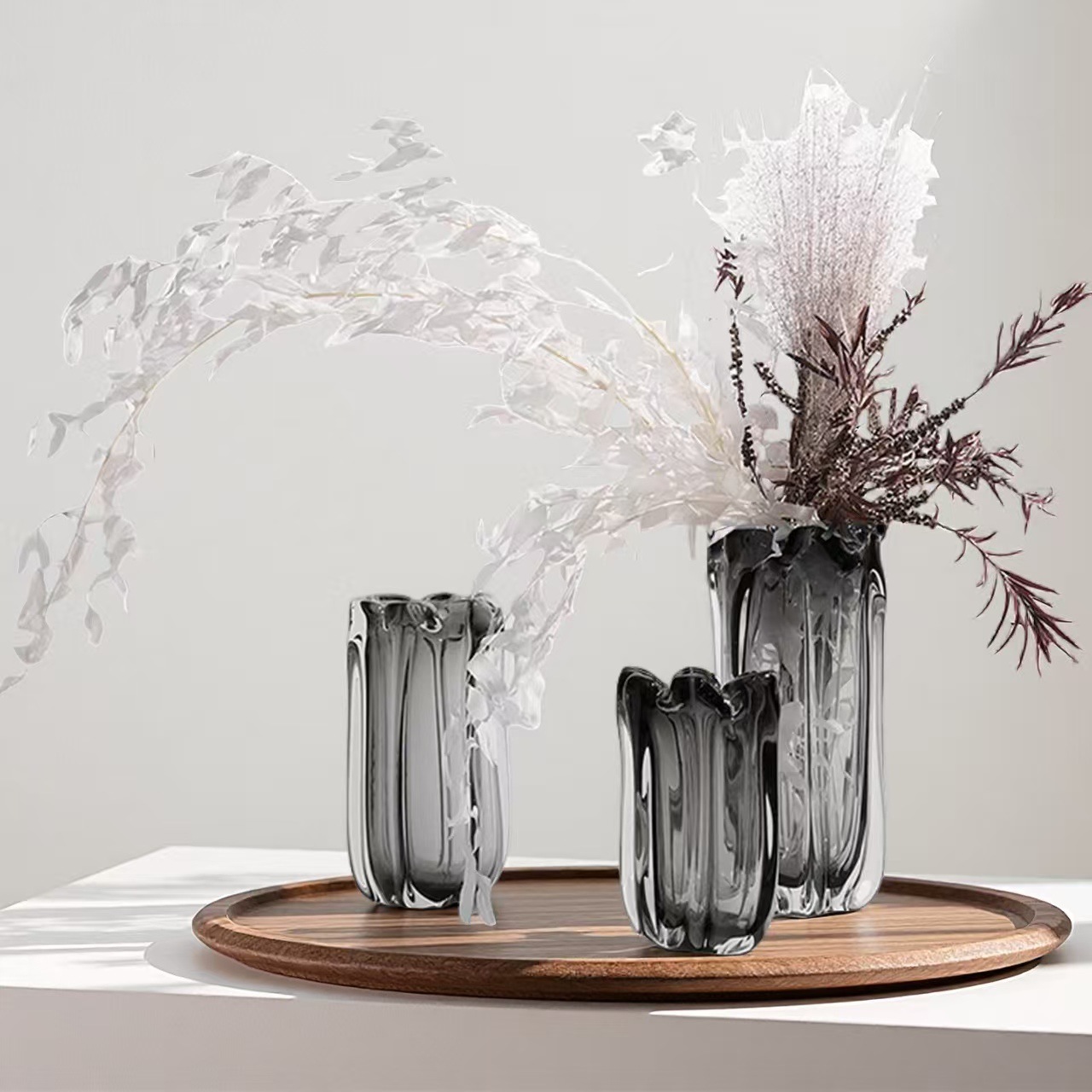 シンプルな中国式ガラス花瓶卸売り客間生け花装飾小花瓶復古ins風工芸品置物
