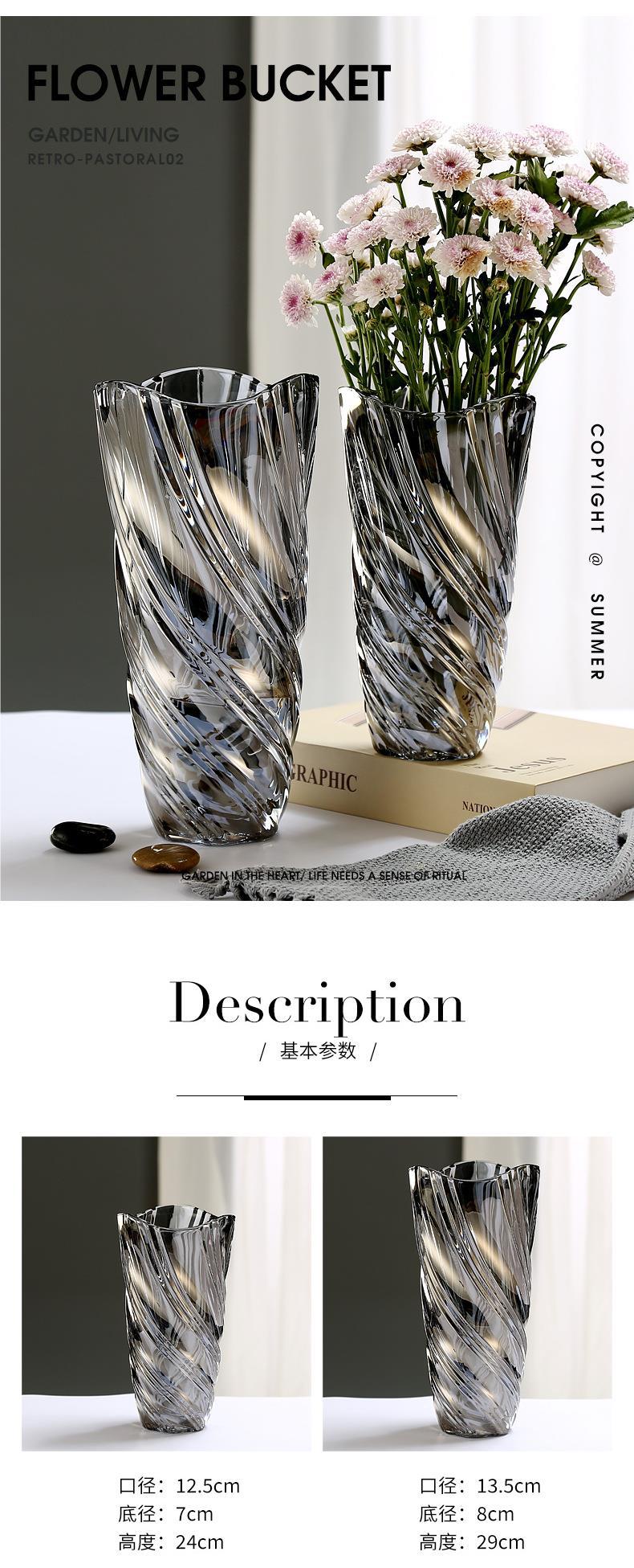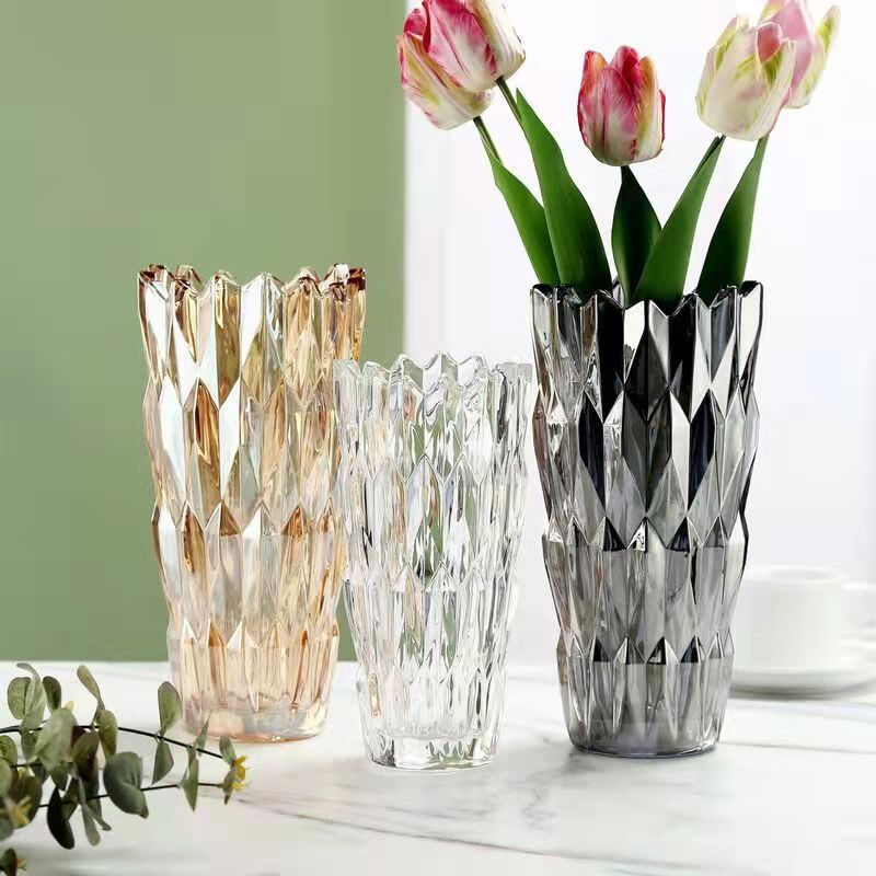 新型ヨーロッパ式水晶花瓶ガラス高級感生け花水培バラ百合花客間寝室装飾置物