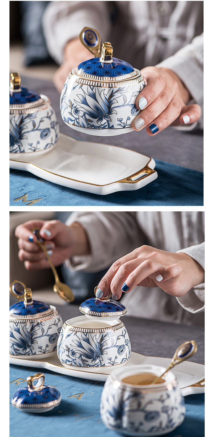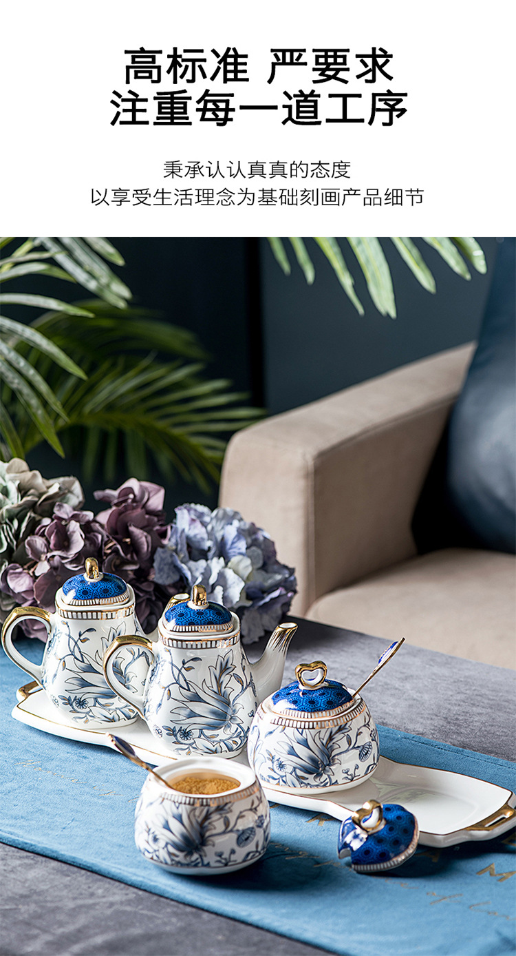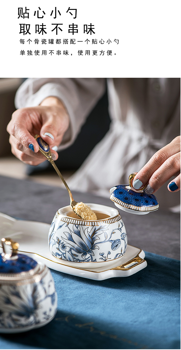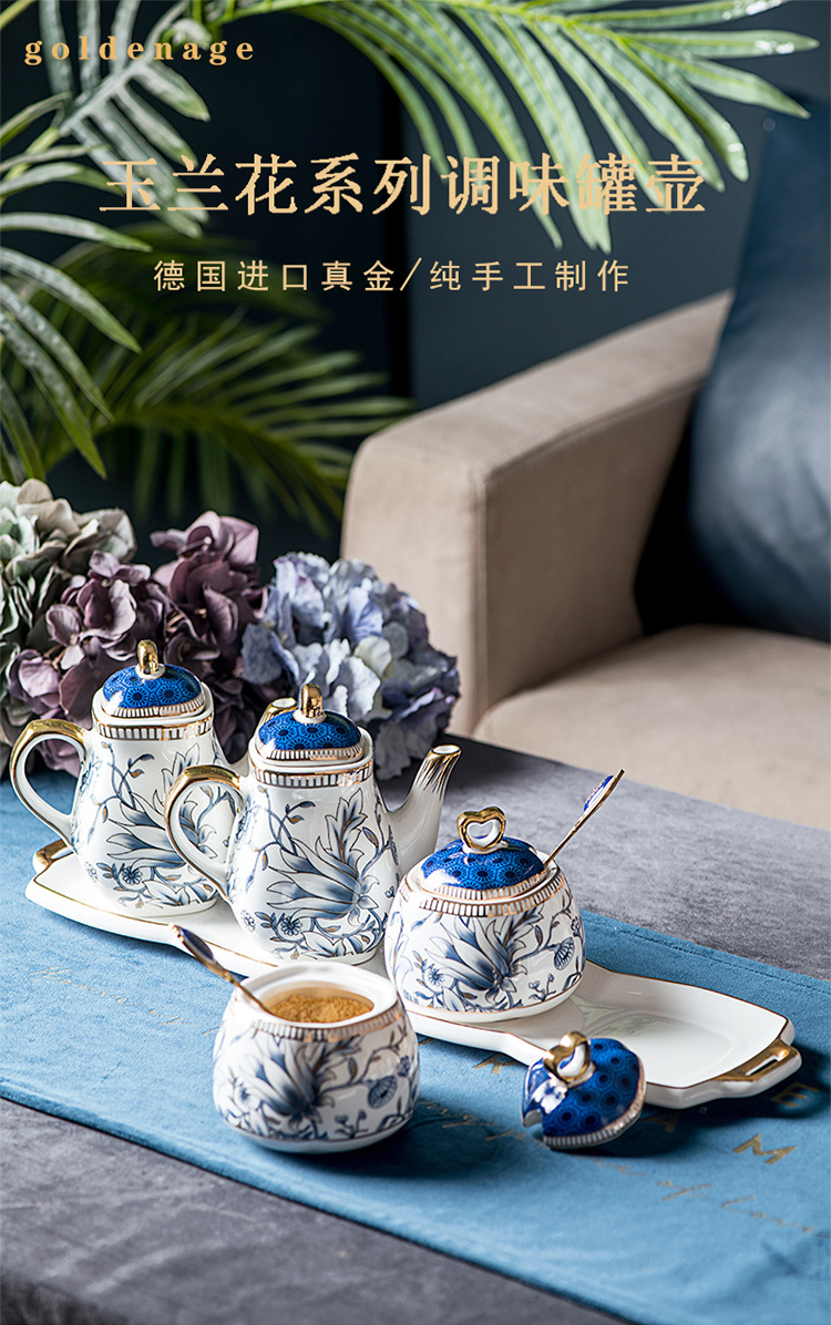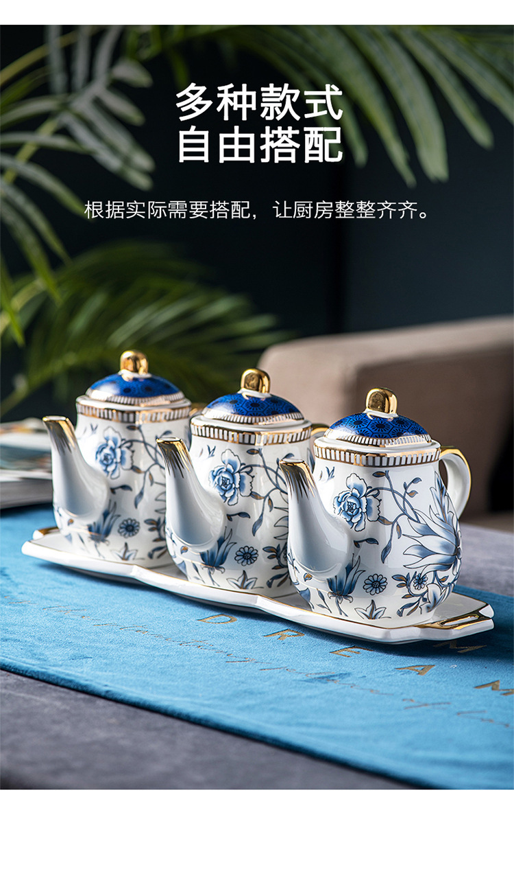 キッチン調味料缶陶磁器調味塩缶酢壺セット中国式高級骨磁器家庭用調味料箱缶