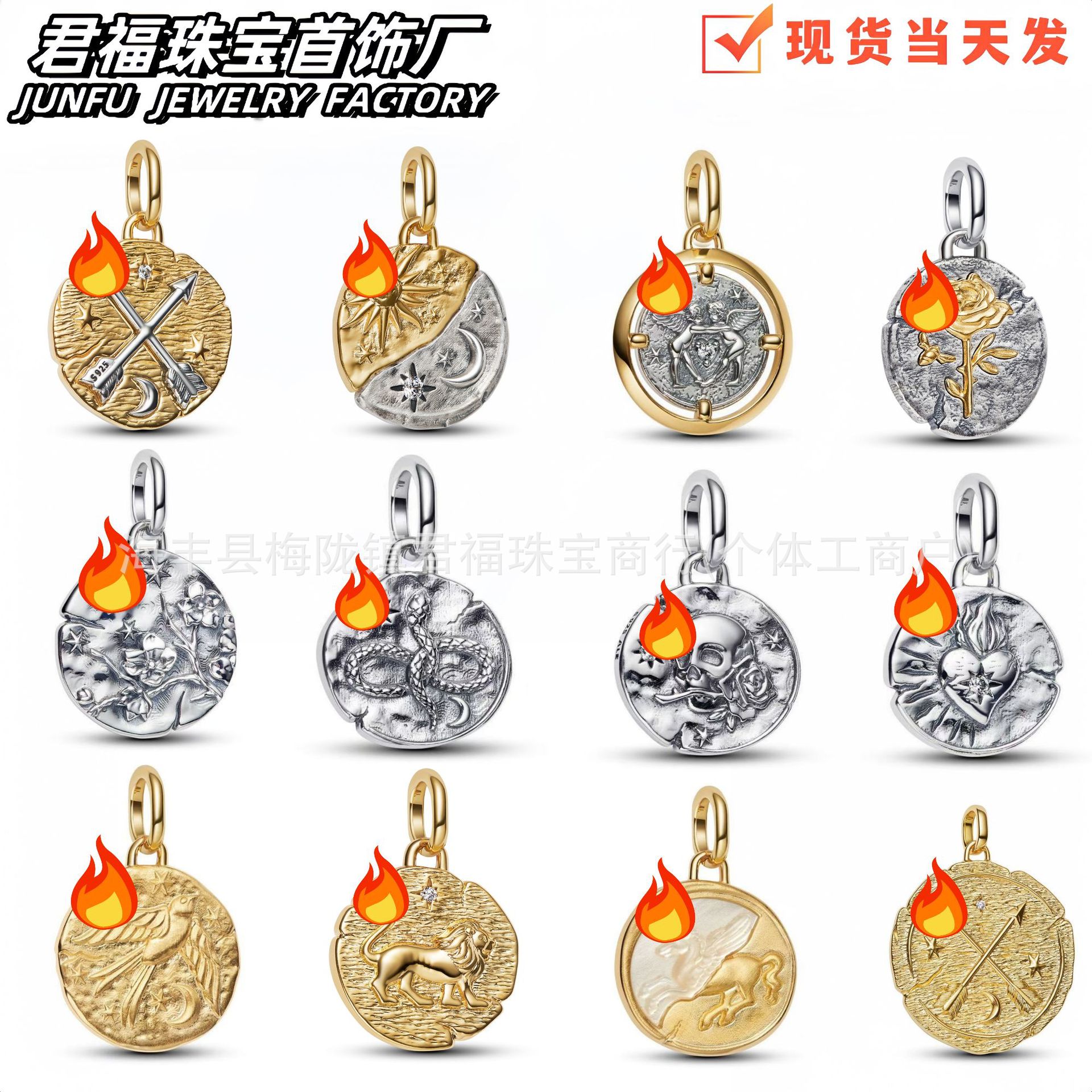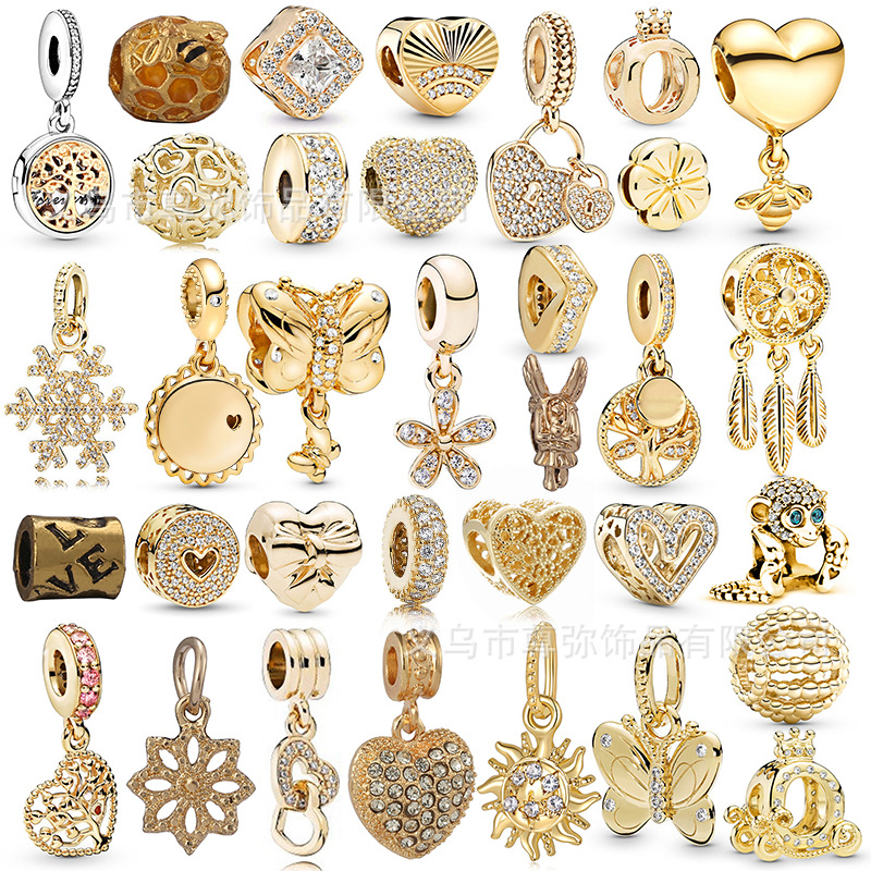 跨境专供潘家多拉珠子白铜镀银厚银Me系列蛇牌复古小配件珠子吊饰