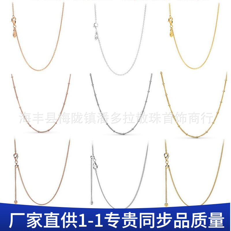 潘家白銅ネックレスdiy銀メッキ十字チェーン2023新型基礎チェーン調整可能o型チェーンアクセサリー