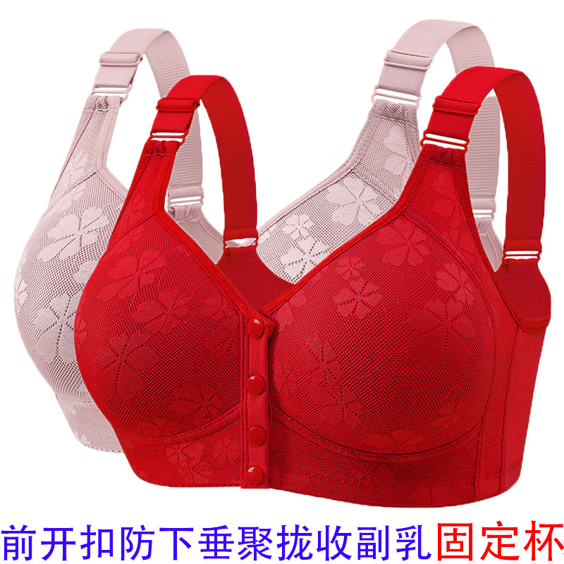 ソフトコットンカップ前ファスナー中高年下着レディーススチールリングなしベストスタイル新型ビッグサイズブラジャー