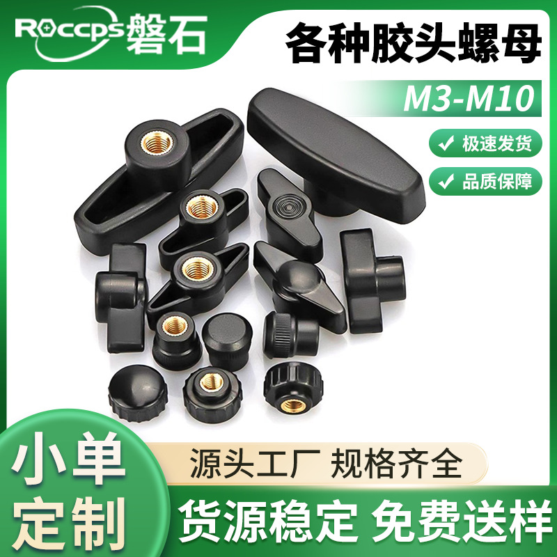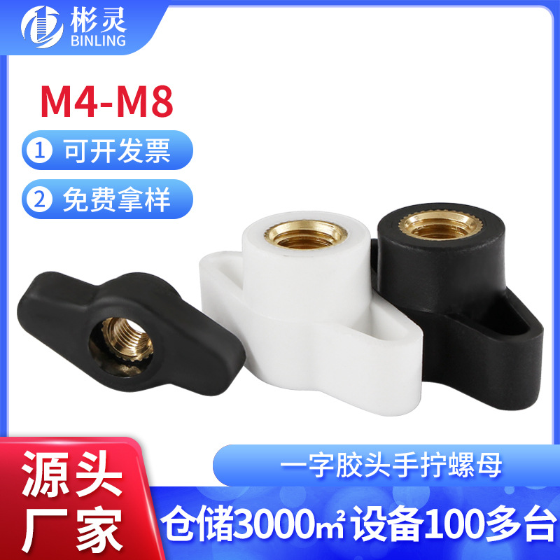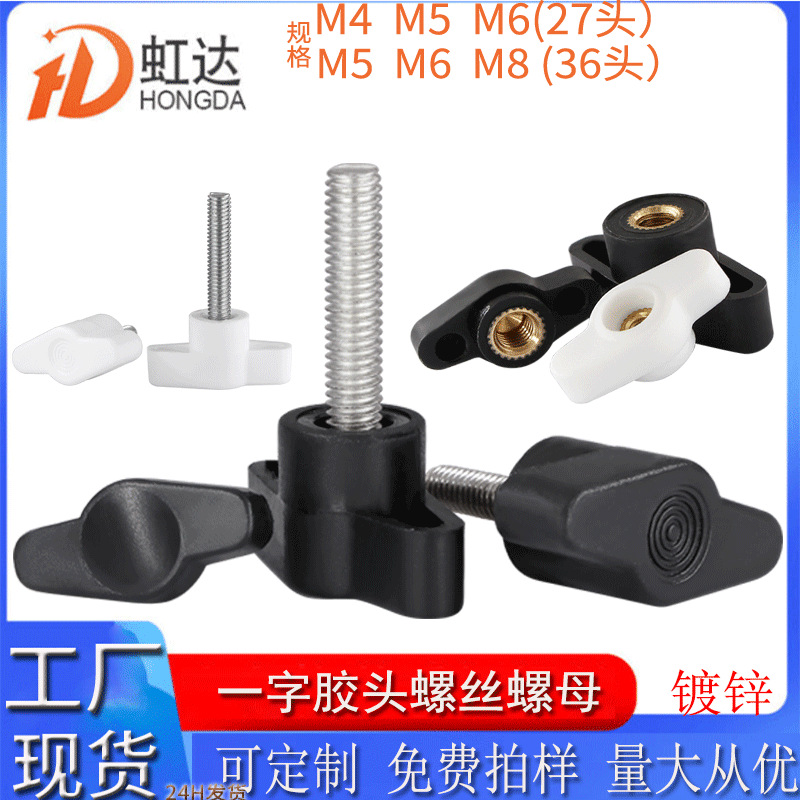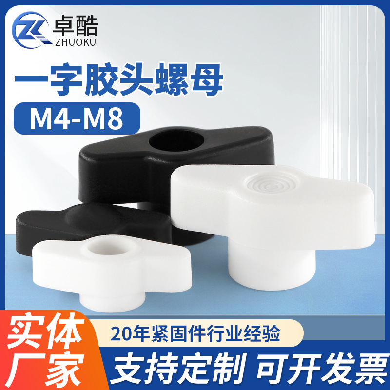 一字手拧胶头螺母Z型铜芯螺帽通孔盲孔塑料头T型调节旋钮手柄螺母