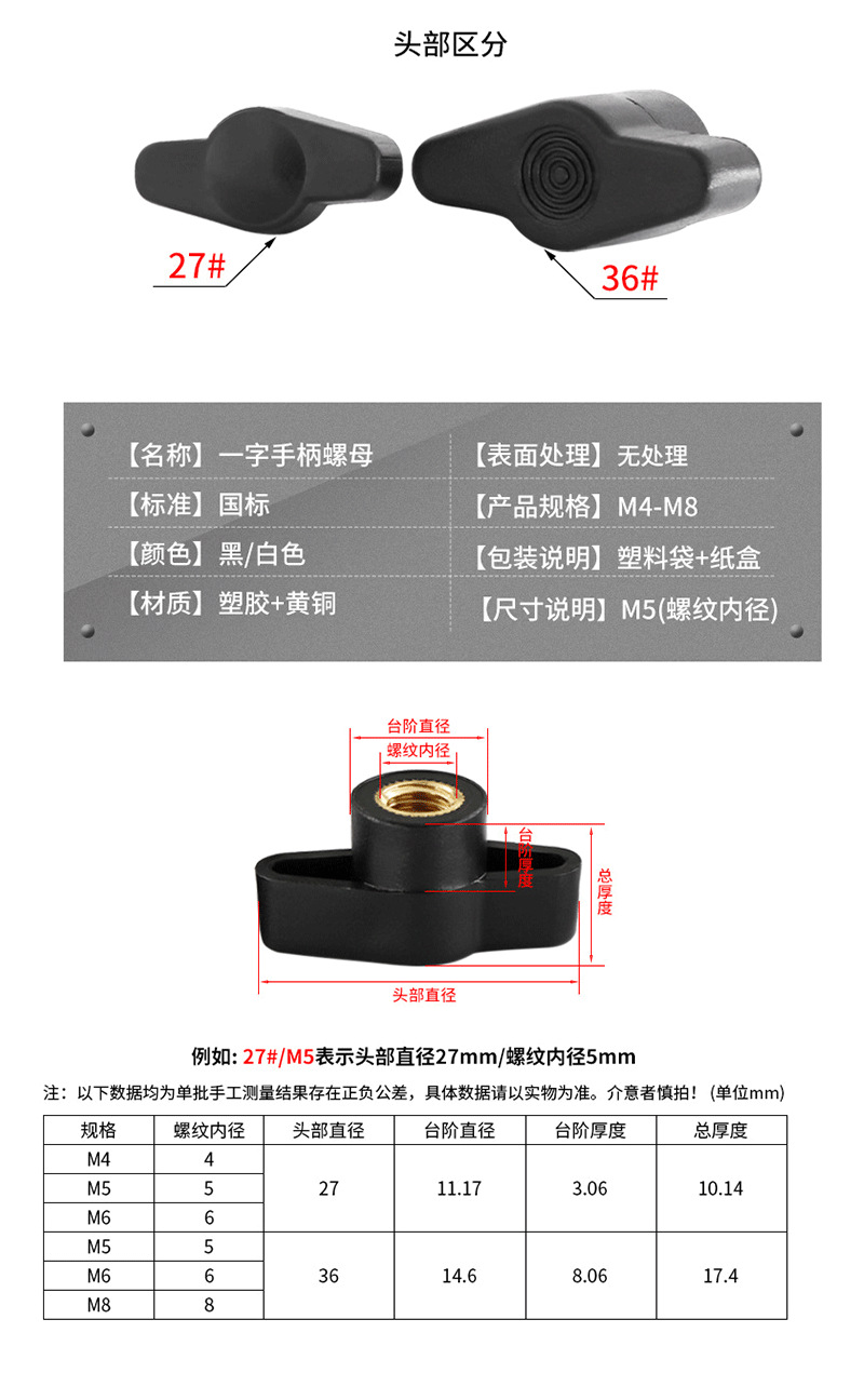 一字胶头螺帽圆头梅花手柄螺母塑料调节手拧螺丝螺母大全M3M4-M16