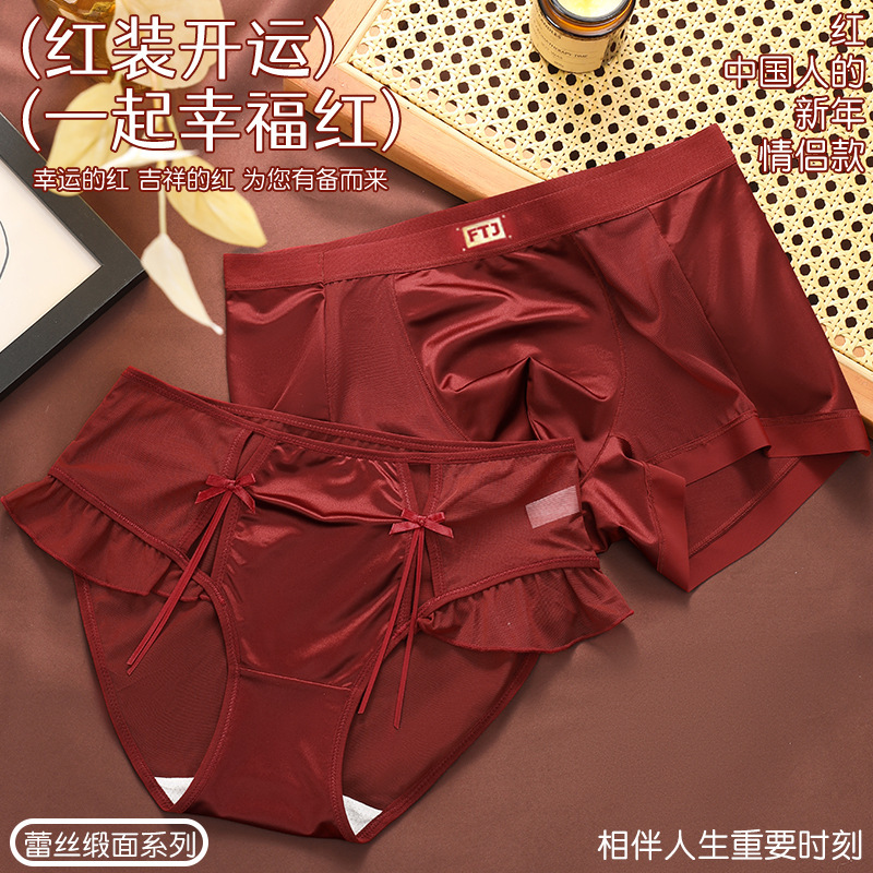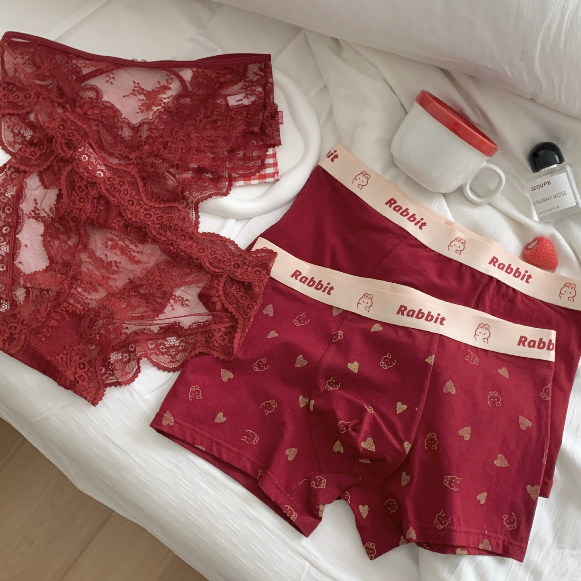 「カップル専属」日系大紅正月カップル下着一男一女バレンタインデープレゼント本命年レース