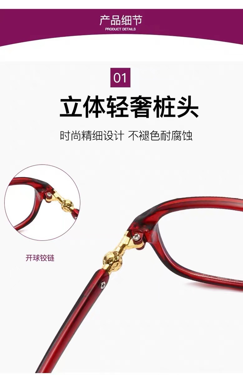 新型の高清のブルーレイ防止の老眼鏡の女性の韓国版のファッション的で優雅なお母さんの老眼鏡は度数がなくて卸売りの平光鏡がありません。