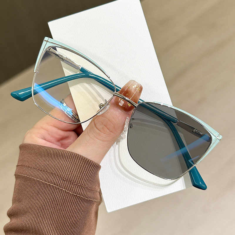 新款潮流猫眼眼镜框个性跨境平光镜女时尚欧美金属变色防蓝光眼镜
