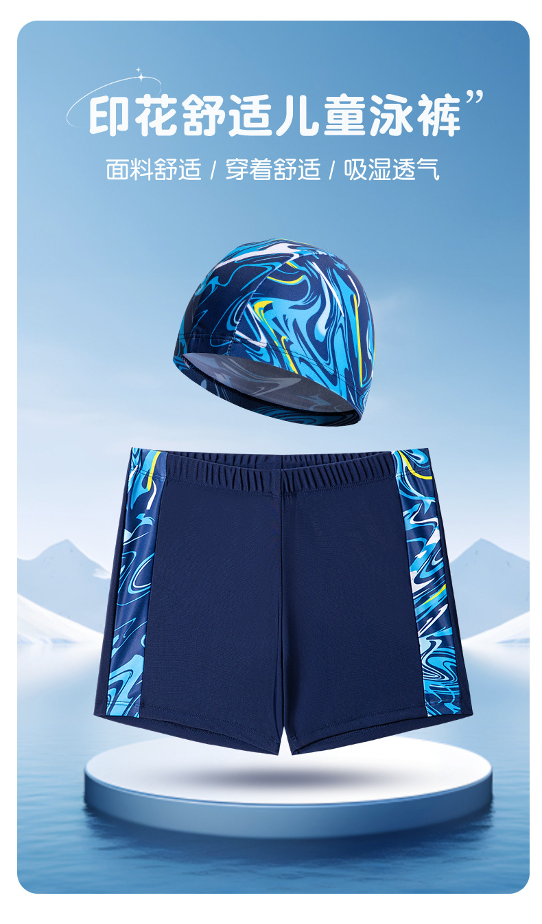 子供用水泳パンツ男児水泳パンツ水泳帽セット漫画プリントストラップ水泳パンツ平角水泳パンツ子供用水泳帽