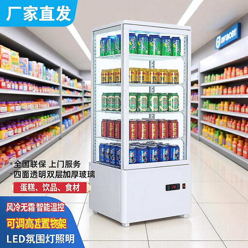 卸売り四面ガラス冷蔵展示棚透明冷蔵庫飲料ケーキデザート冷蔵展示棚縦型冷凍庫