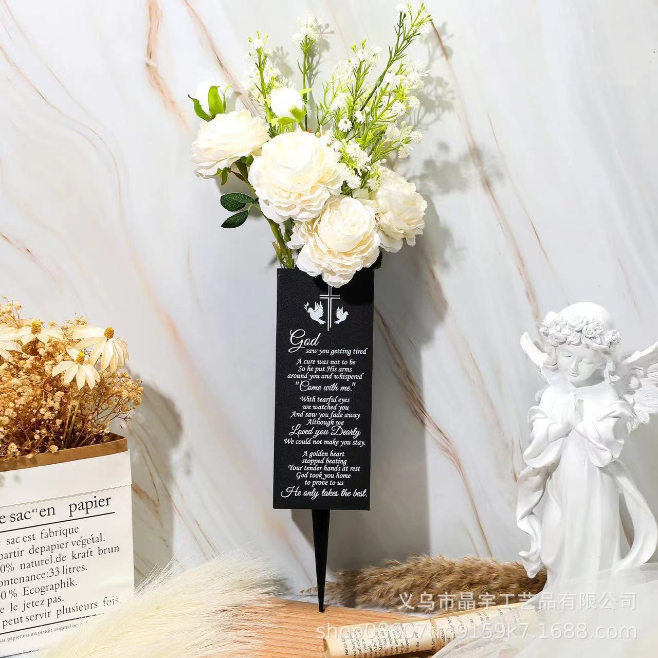 新しいクロスボーダー墓地装飾羽金属花瓶尖頭花棚付き墓地誕生日装飾記念