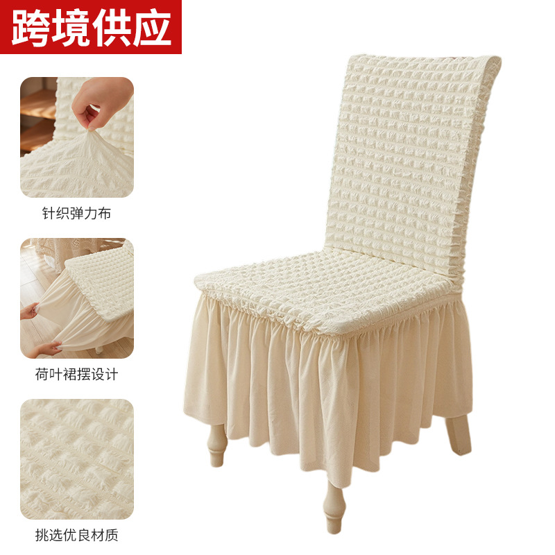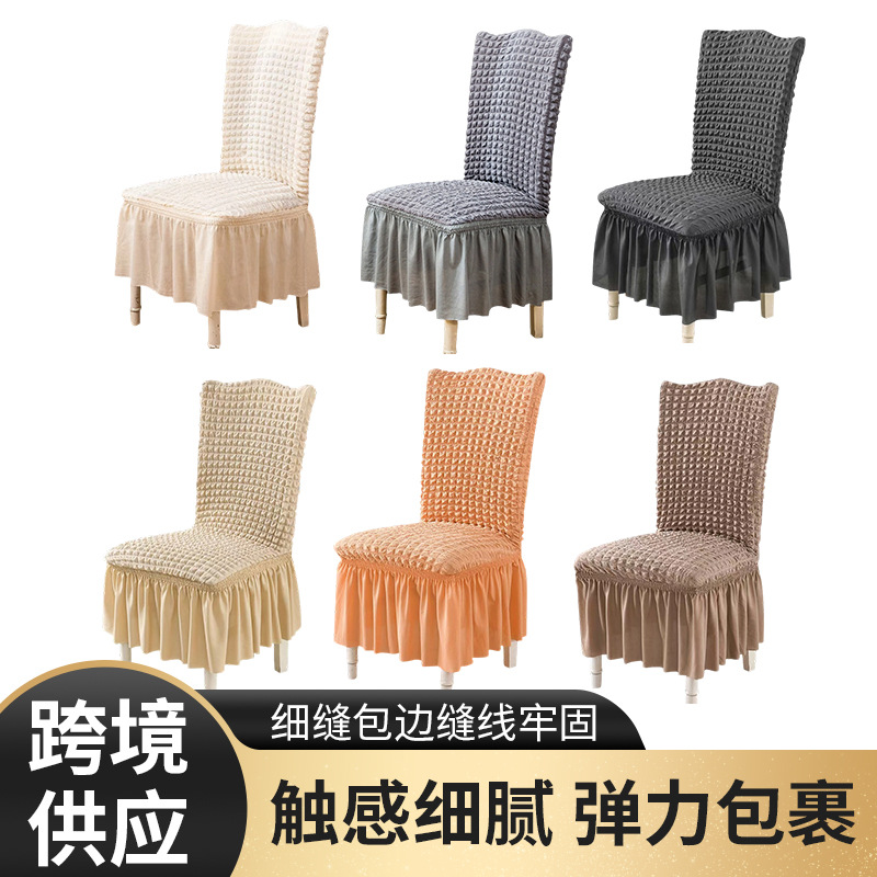 跨境TEMU椅子套泡泡纱弹力裙边连体家用椅套酒店餐椅套纱餐桌