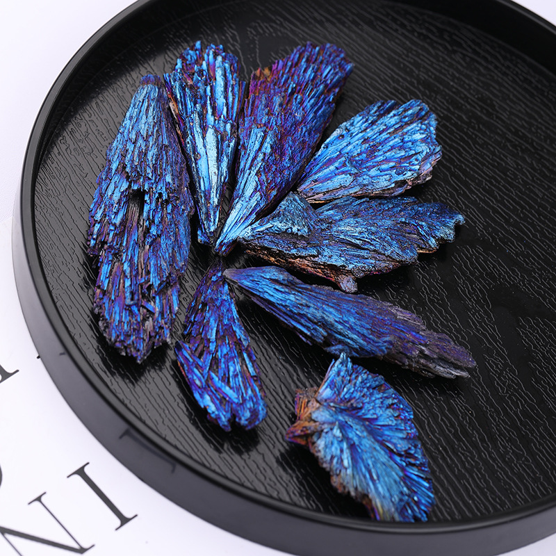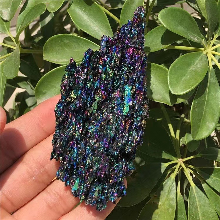 天然碧璽彩碧璽メッキ青碧璽孔雀羽原石彩鉱石装飾奇石置物鉱標
