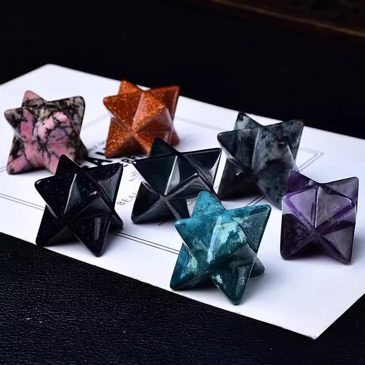 天然水晶メルカバ置物装飾対角40六芒星生命の花立体ペンダント八角星