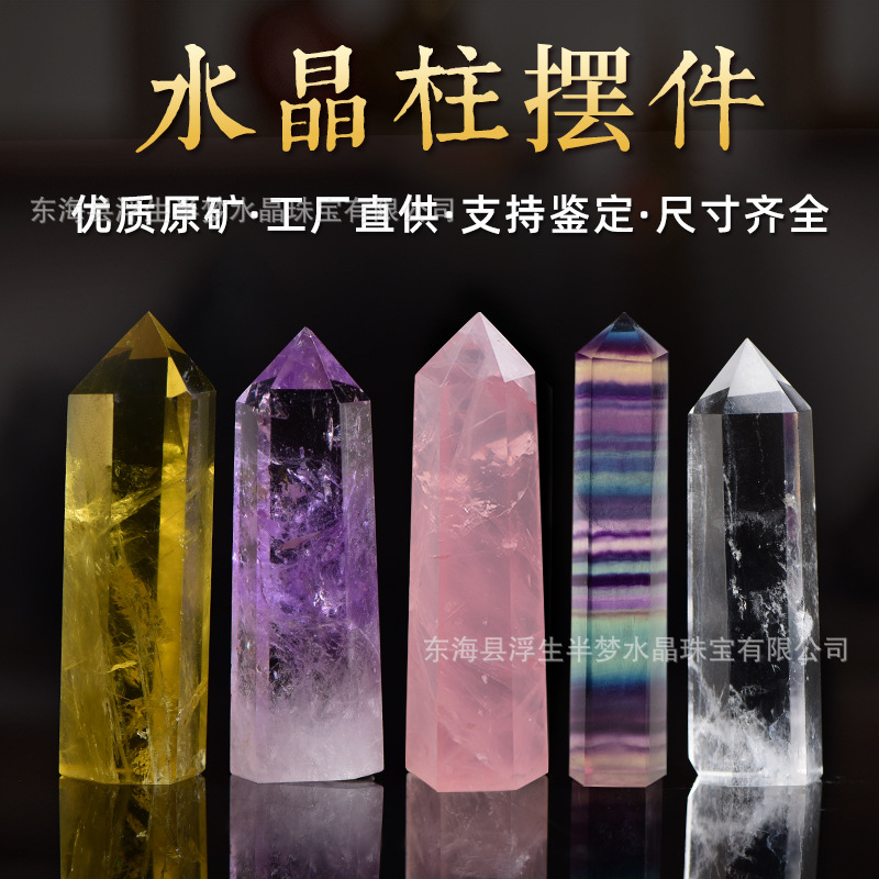 天然水晶柱置物ホームオフィスリビングデスク六角柱装飾品黄粉紫白水晶原石