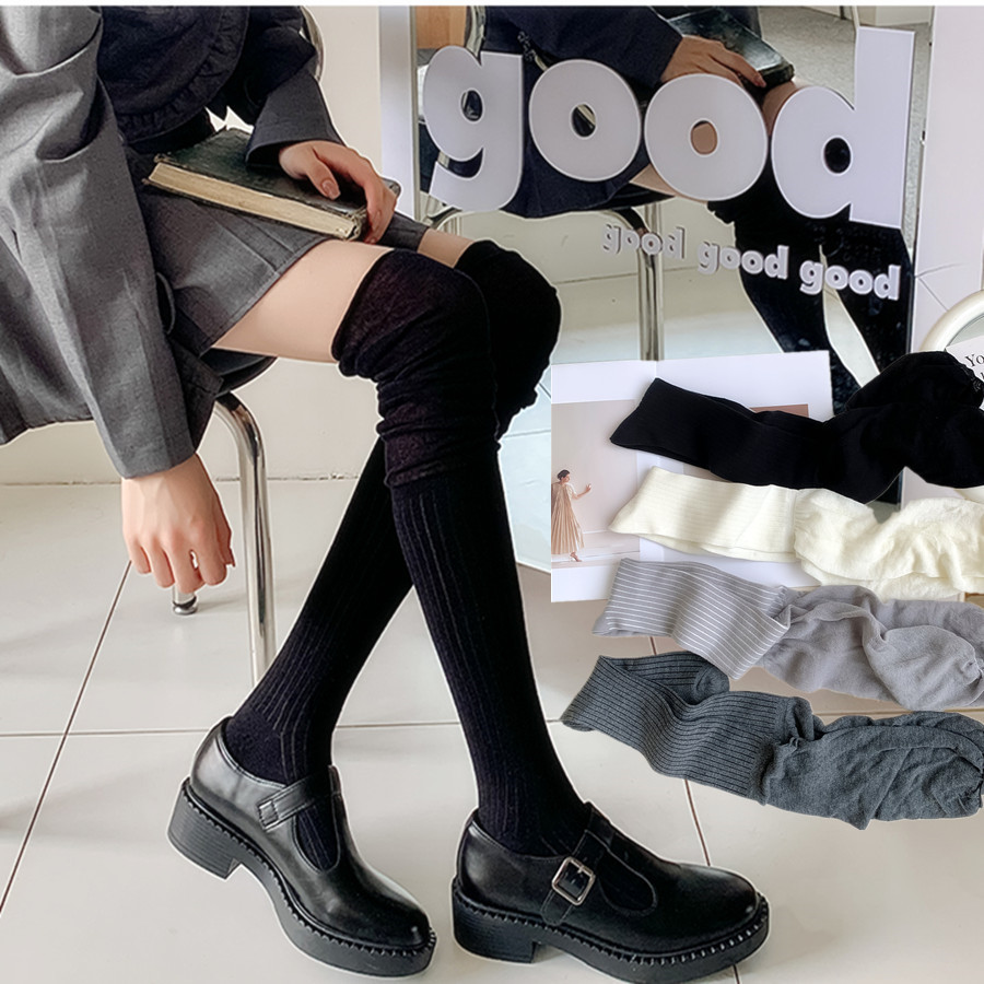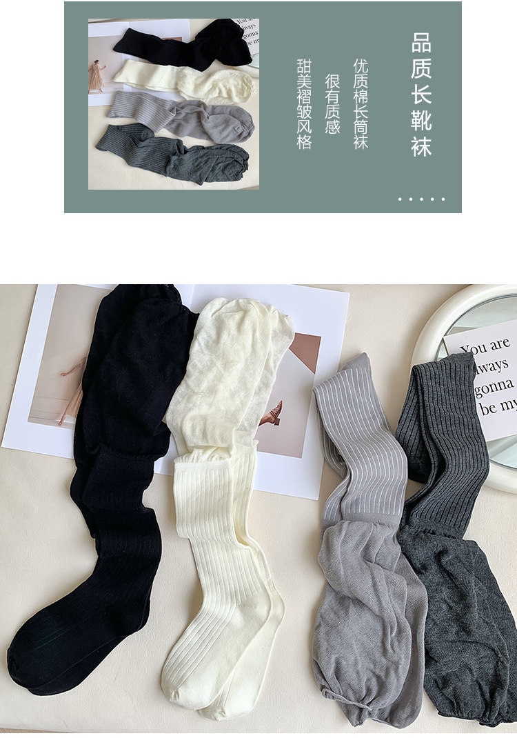 春と秋の綿ストッキング、カジュアルで多用途、トレンディな無地、痩身、滑り止め、膝上ソックス、Zhuji ソックス