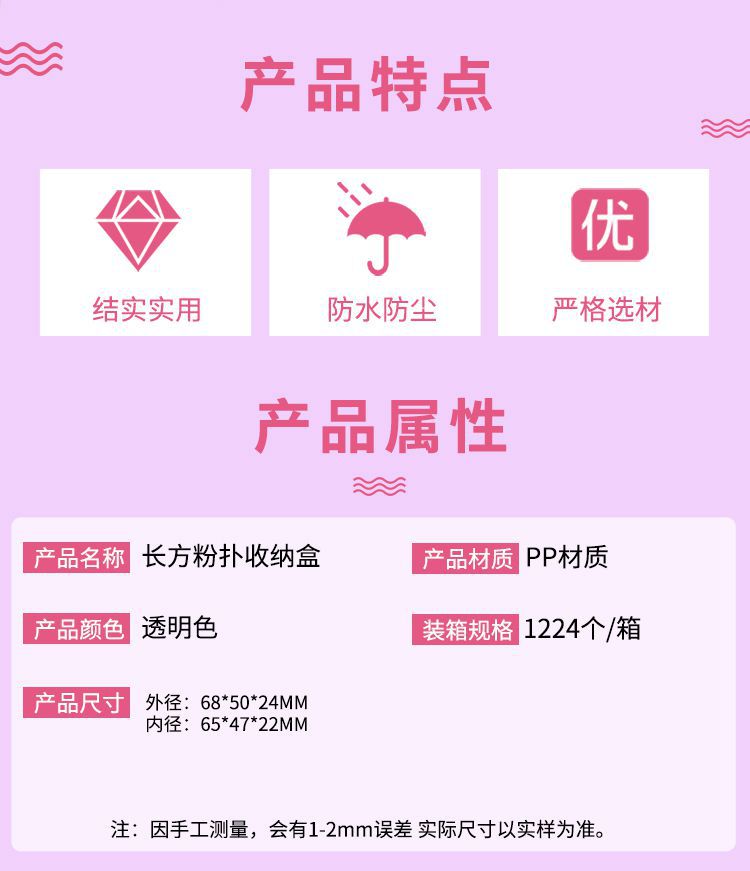単品用フィンガーパフ専用収納ボックス 空箱 防塵 ポータブル ミニ 親指サイズ PPプラスチックボックス