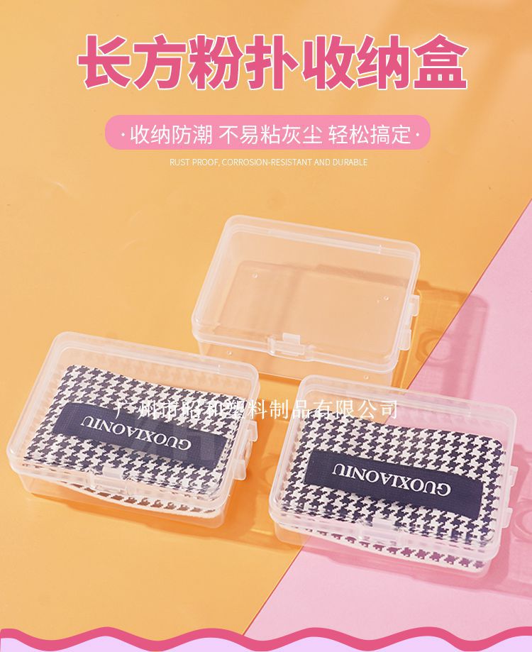 Narsエアパッドパフ収納ケース空箱携帯用超薄型植毛パフ長方形透明PPプラスチックケース