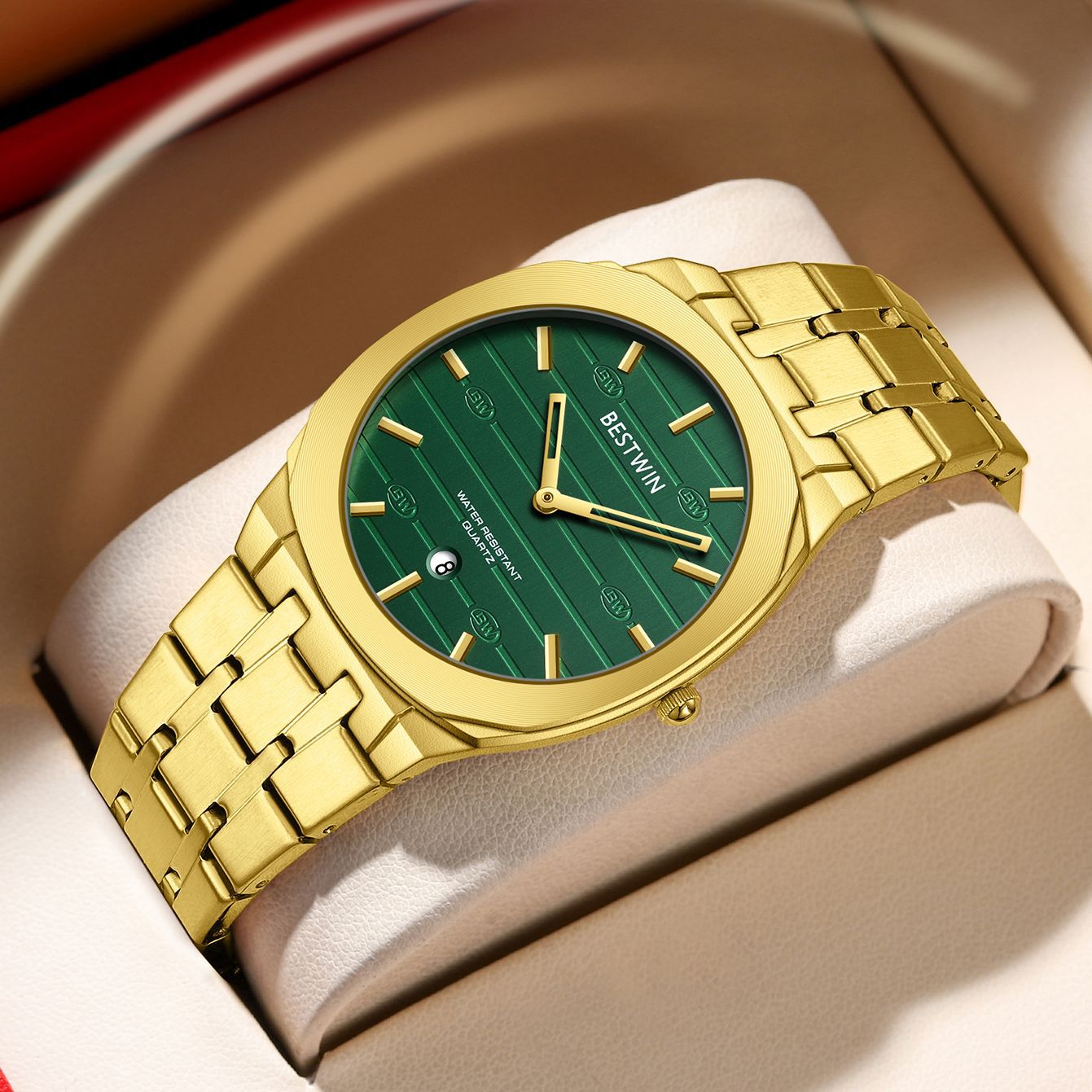 热销个性超薄男士时尚石英博士通BESTWIN潮流钢带绿水鬼手表批发