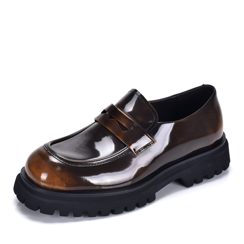 厚い底の楽福の靴の韓国版のカジュアルな潮流の頭層の牛革の足は本革の明るい皮の快適な通気性の男性の靴の柔らかい底を踏んでいます。