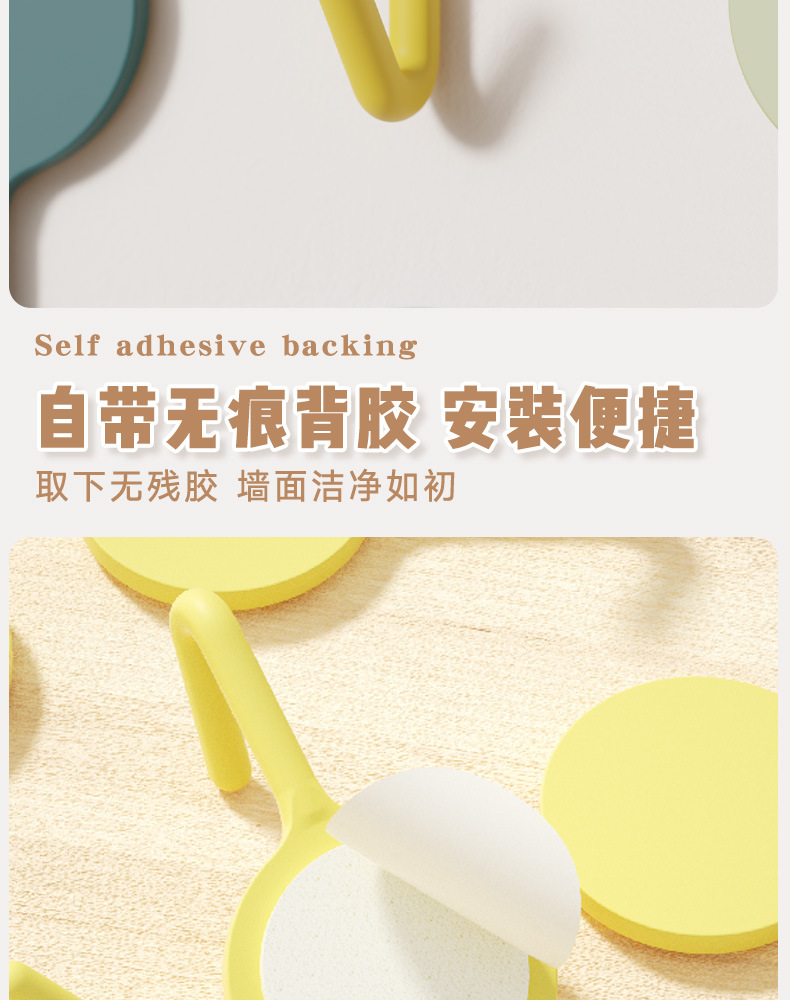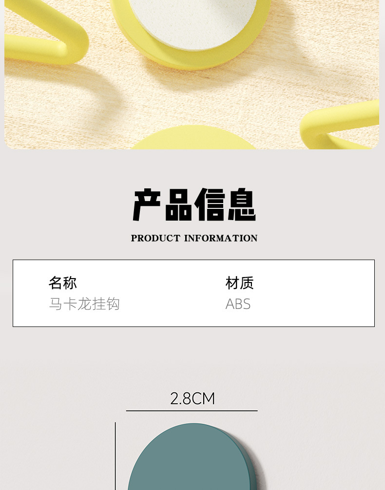 マカロンのフックは穴を開けないで軽くて豪華で可愛いです。家庭用キッチンのドアの後ろにフックをつけます。
