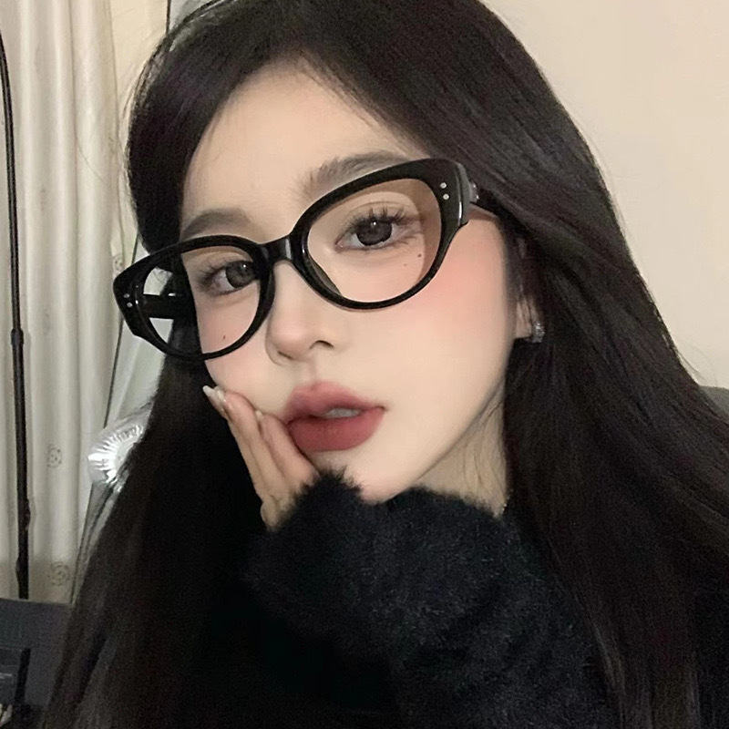 ヴィンテージキャットアイブラックフレームメガネ、メイクなし、インスタイル、ファッショナブル、美白、多用途、小型超軽量フラットメガネ