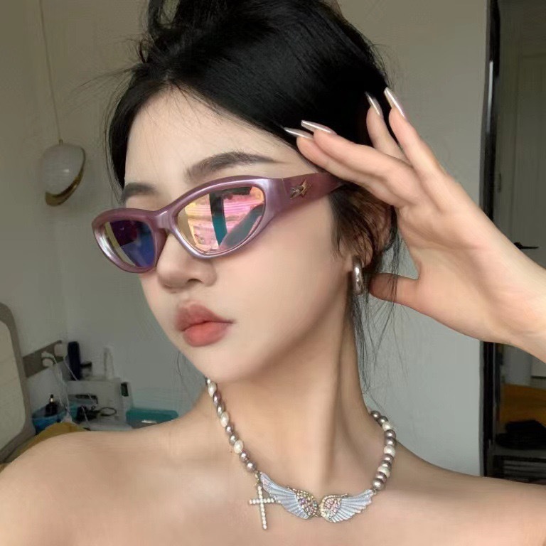 2024年新作キャットアイサングラス、ファッショナブルでパーソナライズされた日焼け止めサングラス、ホットガールストリート撮影、凹面形状、男性と女性向けの超クールでスタイリッシュ