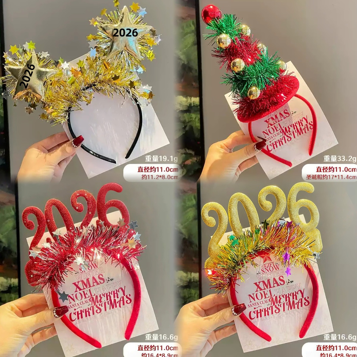 クリスマスヘアバンドヘッドバンド女性用2026新作大人用光る帽子ヘッドバンドフェスティバルエルクの角リボンヘアピンヘアアクセサリー
