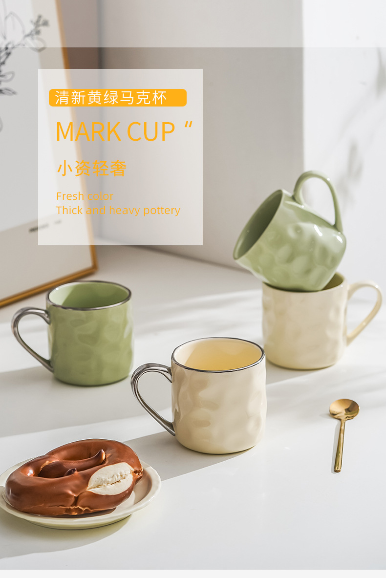 潮州陶磁器カップ高顔値ins風朝食カップネット赤クリーム風カップルカップ家庭用シンプルなマグカップ
