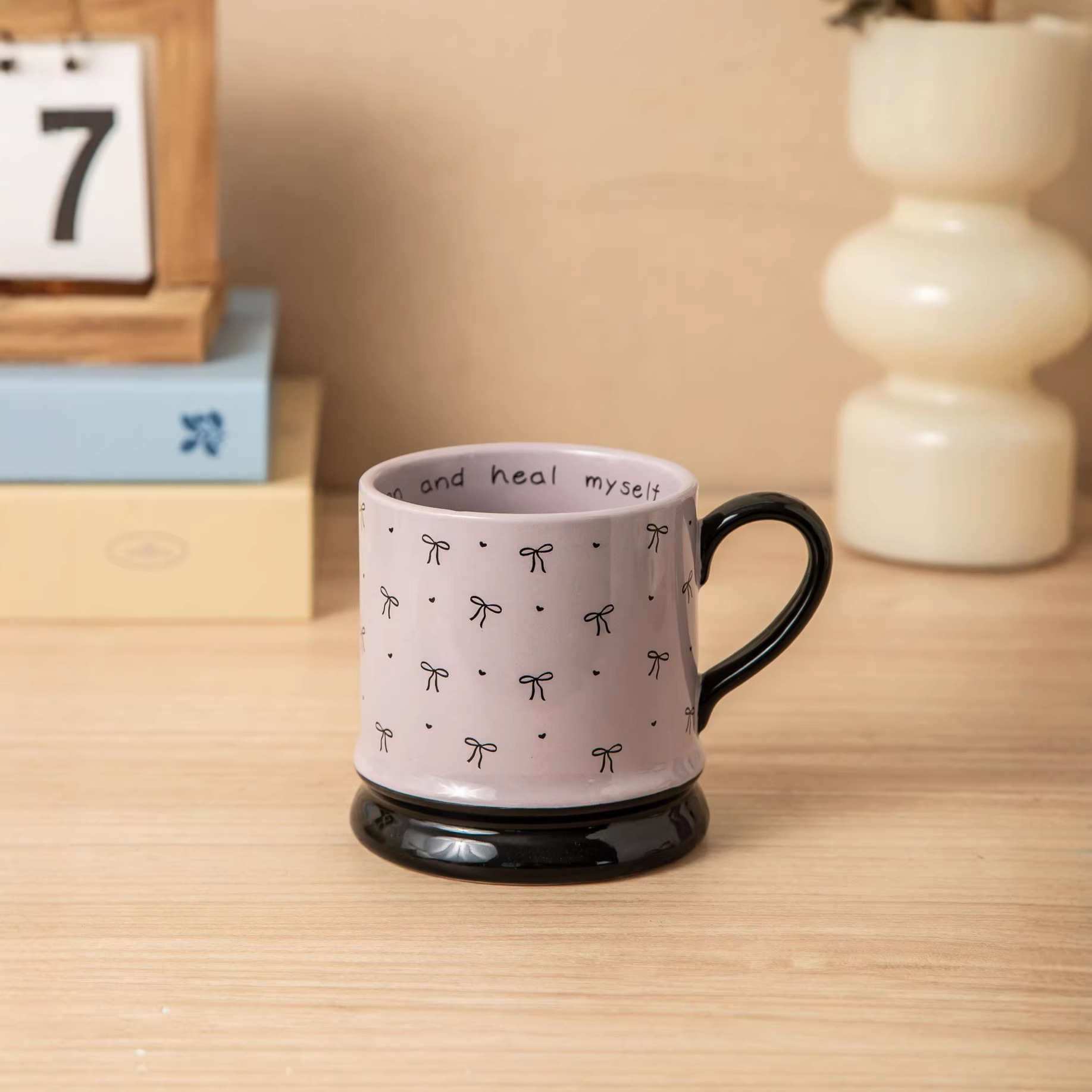 中古ins风咖啡杯家用简约陶瓷马克杯精致送女生伴手礼蝴蝶结杯子