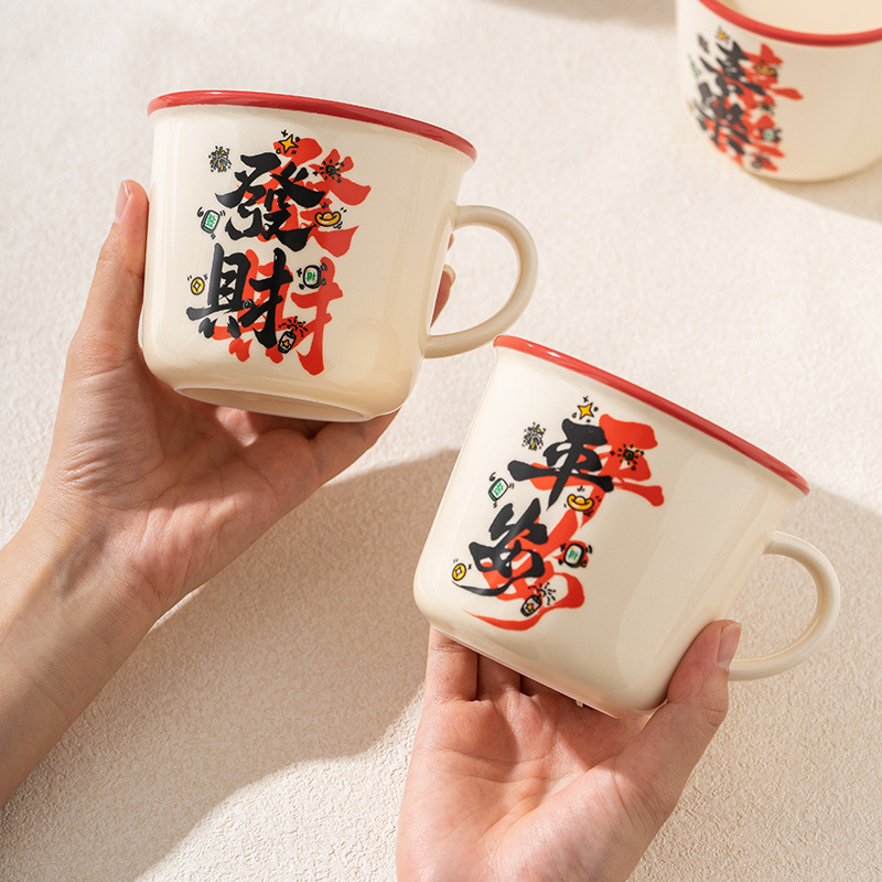 生日礼物伴手礼毕业杯子多款可选喜字一对小众复古陶瓷马克杯文字