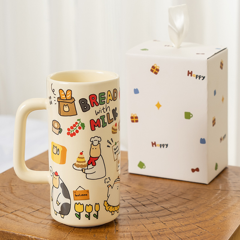 高颜值陶瓷水杯面包奶牛伴手礼童趣可爱马克杯大容量直筒杯礼品