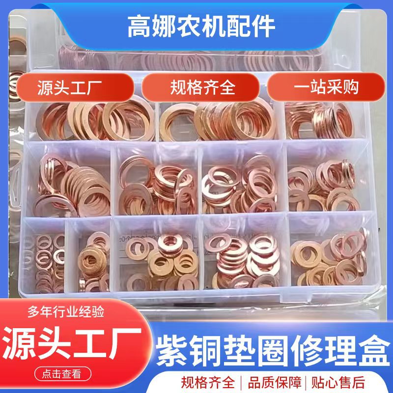 クロスボーダーeコマースセットオイルシールワッシャー120pcs紫銅スペーサーo型シールフラットガスケット箱入り