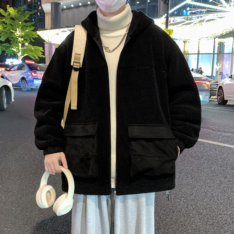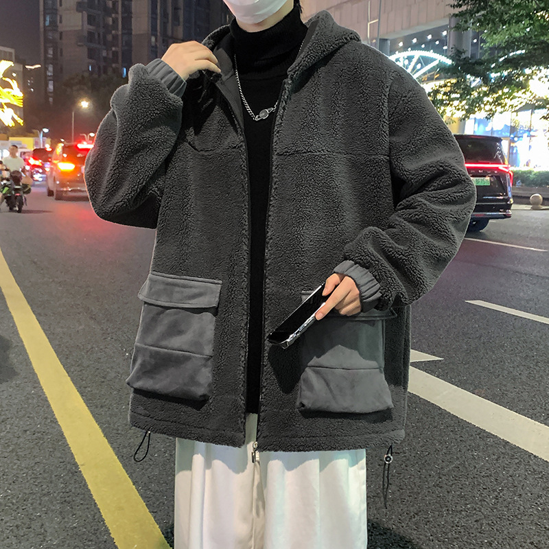 大きいサイズの工装と帽子の両面の羊の小毛のジャケットの男性は太って太っている人のファッションのブランドの中のファッションのブランドのコートを増加します。