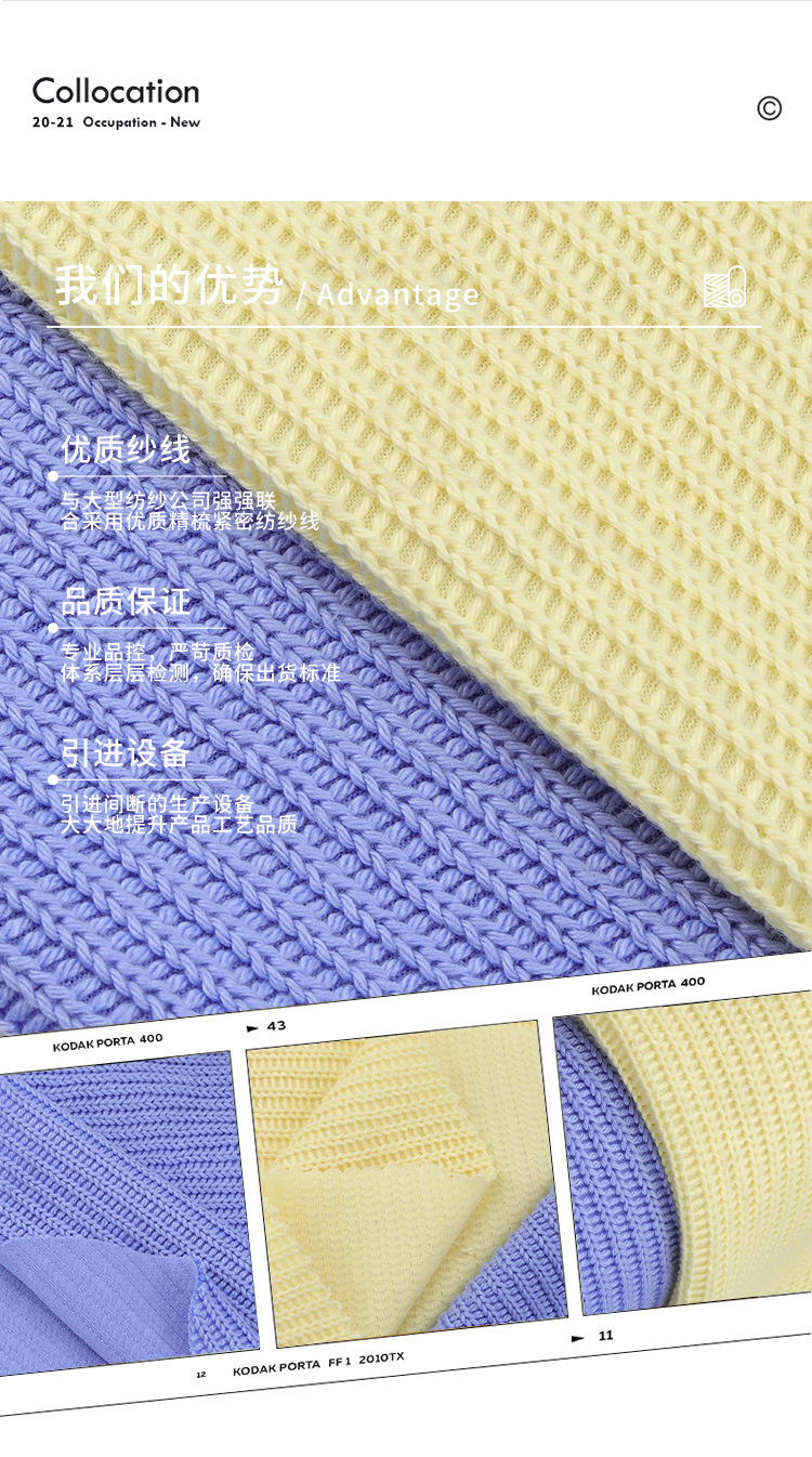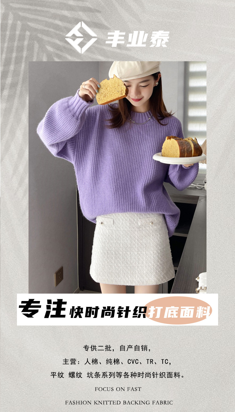 厚手のニットセーター、380g、秋冬向け、高密度でわずかに伸縮性のある質感、模造ウールニット生地、厚手でファッショナブル。