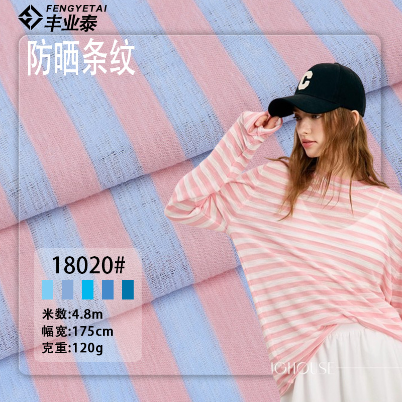 春夏日焼け止めファッションニット横間条120g微透ポリエステル綿tc弾力ニットストライプ生地