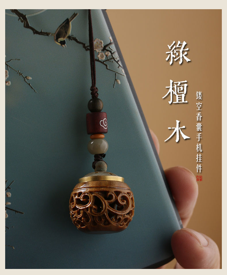 古風流蘇ストラップ緑檀木携帯香嚢球透かし彫りチャイナドレス圧襟飾り香丸球ペンダント拡香器