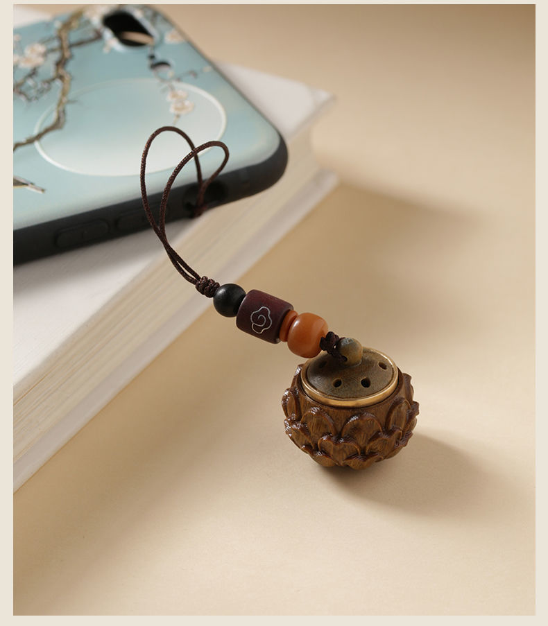 創意的な緑檀木の透かし彫りの香嚢のボールベルトのフリンジは如意の携帯電話のペンダントの車内の装飾品にぶら下がって香りを広げます。