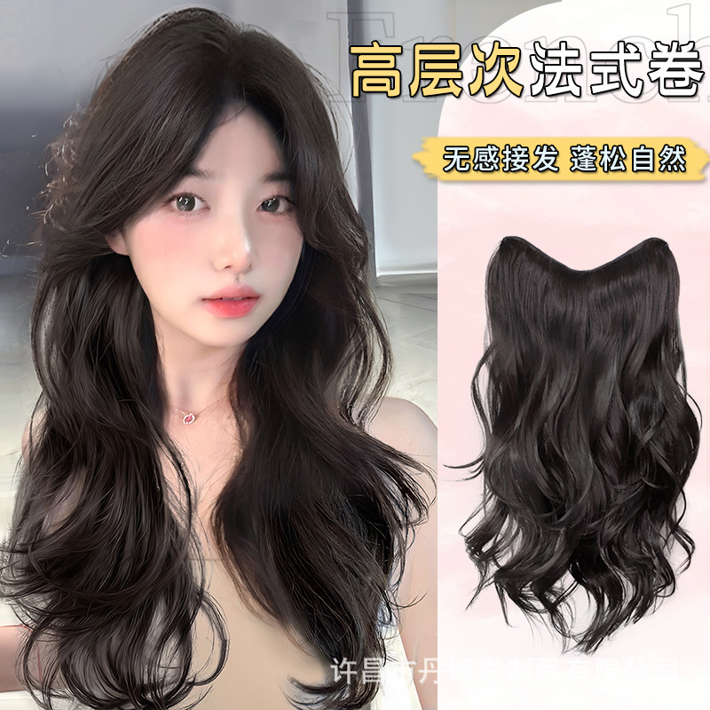 假发片女长发一片式高层次法式卷仿真无痕增发量蓬松大波浪接发片