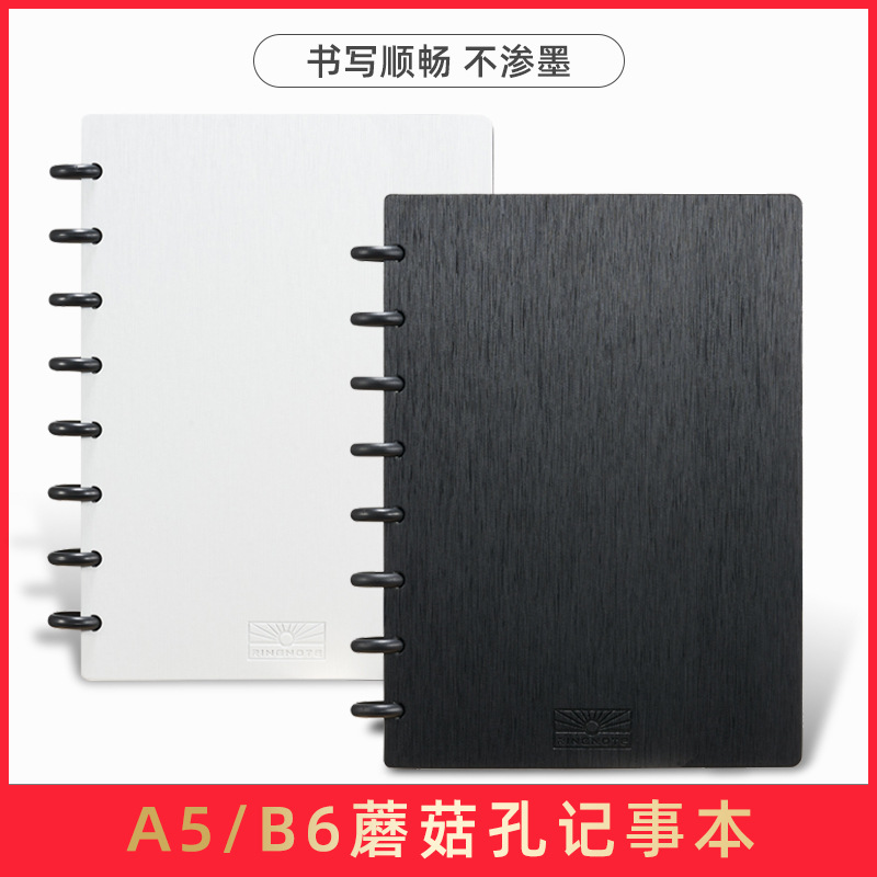Ringnoteビジネスノートa5 b6厚手表纸シンプルルーズリーフ日记本きのこ穴メモ帐
