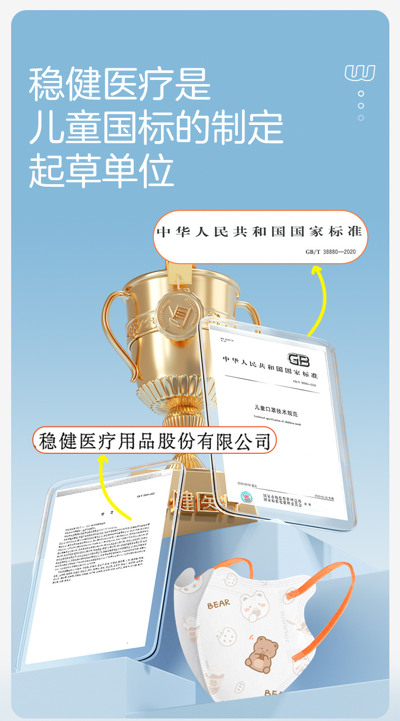 定制稳健儿童中童口罩3d立体男女孩1-3宝宝幼童6-14小孩透气专用