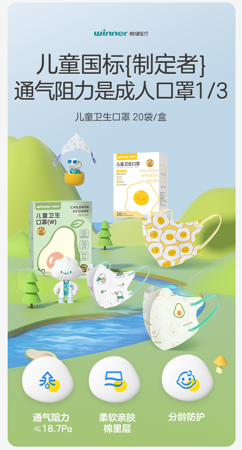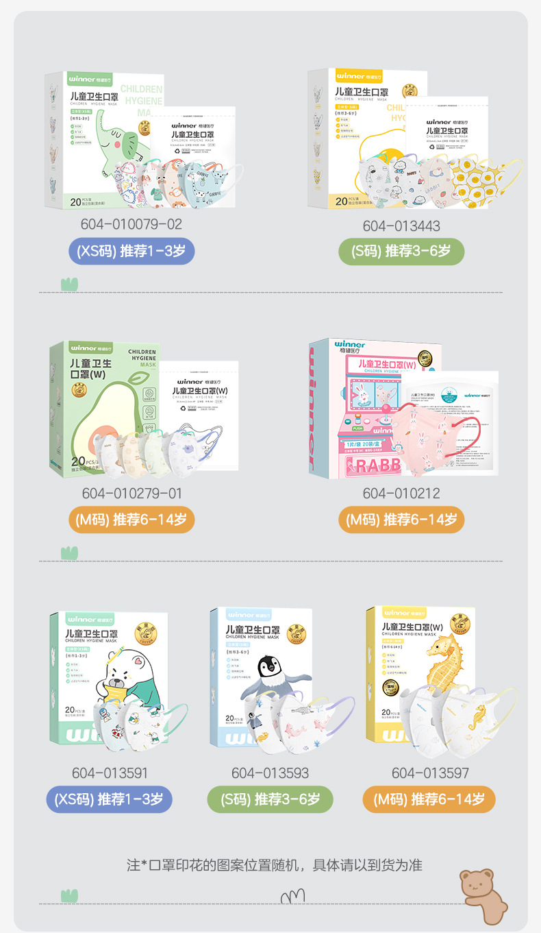Winner穏健小学校甥シリーズ6-14歳児童マスク3d立体児童衛生マスク20個/箱