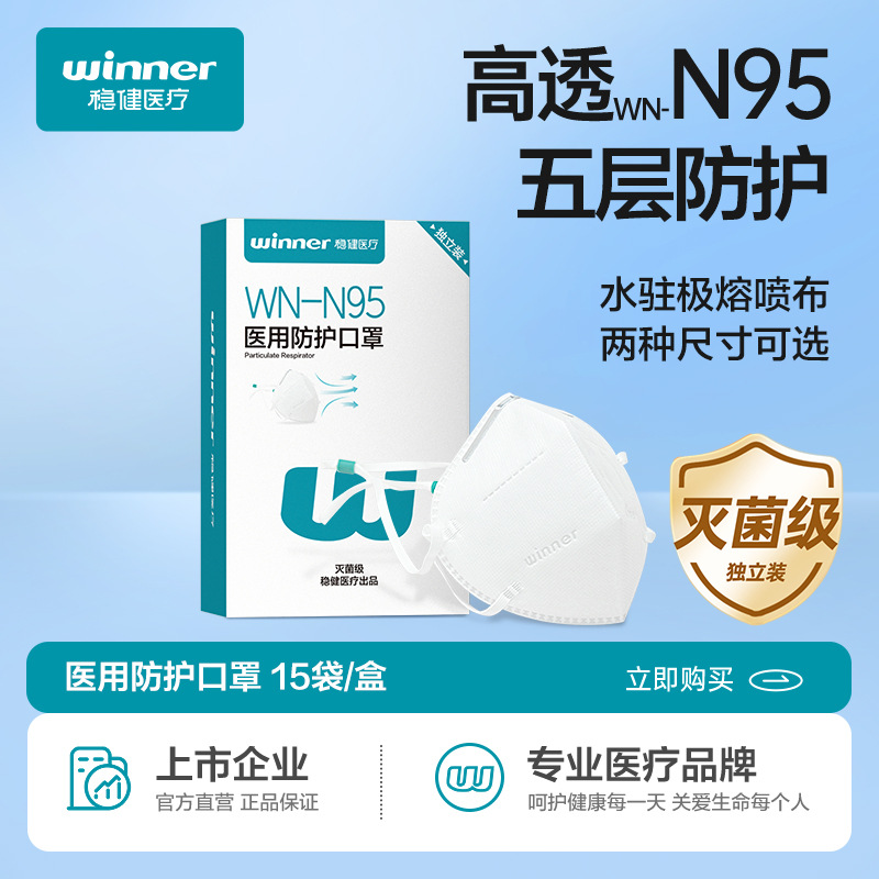 Winner穏健高通気滅菌白色医療用防護マスク折り畳み式WN-N95マスク15個/箱