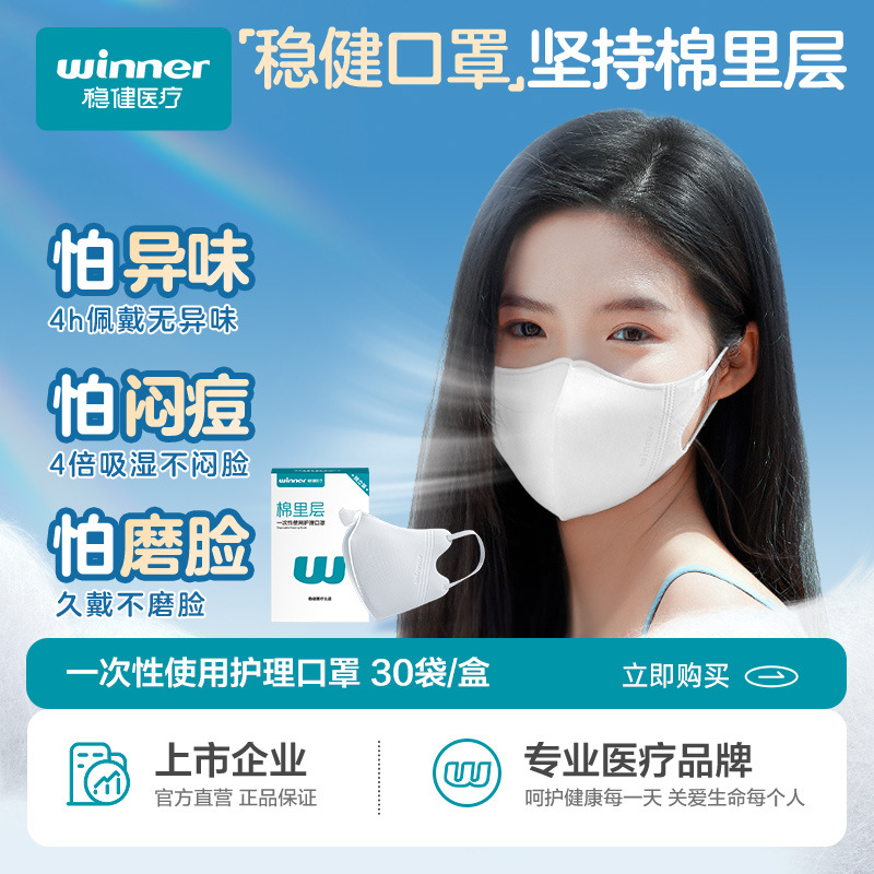 Winner穏健使い捨て看護マスク日用型三層独立包装立体マスク30本/ケース