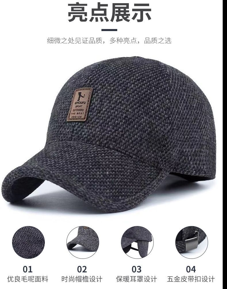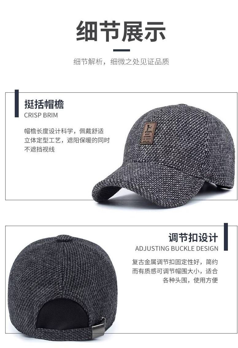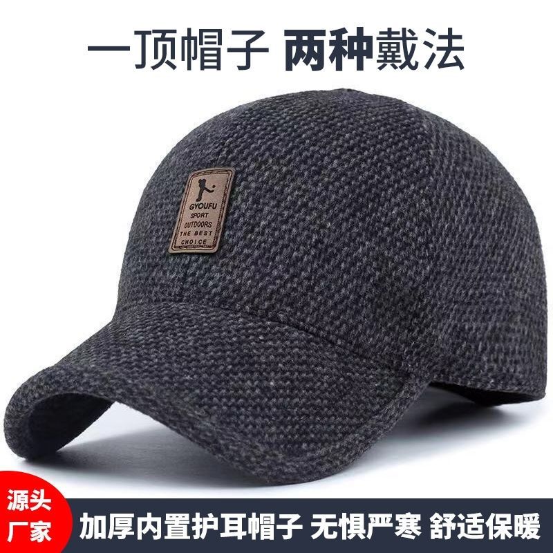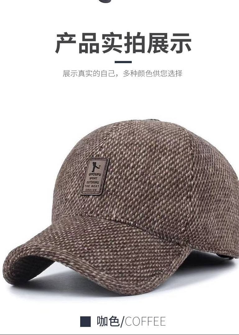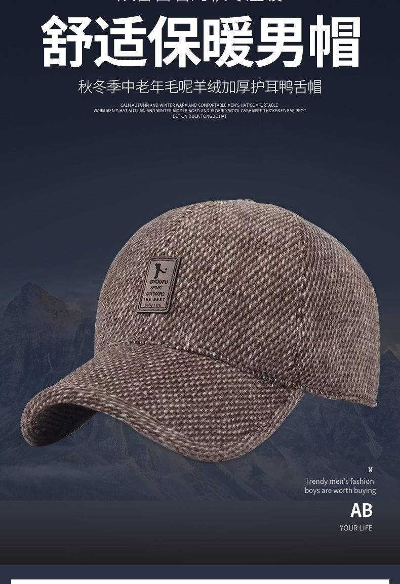 中高年帽子男性秋冬ベルベット綿帽アヒル舌帽屋外保温耳保護帽革父前進帽