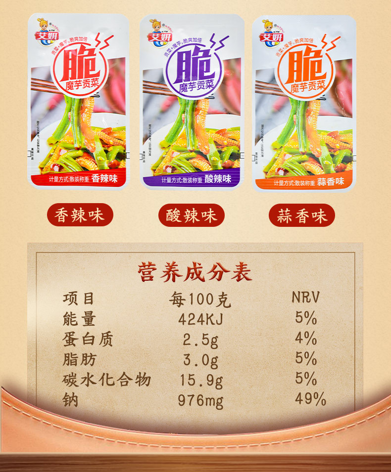愛燕貢物野菜こんにゃく粉末、すぐに食べられるこんにゃく貢物野菜、ライスソース、ピクルス、バルク小袋スナック