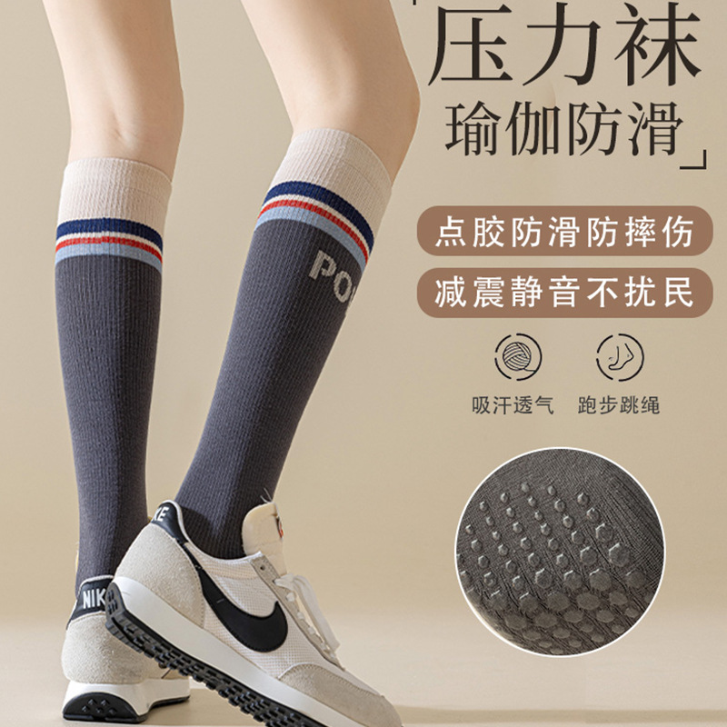 ストレスソックス女性プロフィットネス縄跳びランニングスポーツ圧縮筋肉滑り止め高筒ヨガふくらはぎソックス長