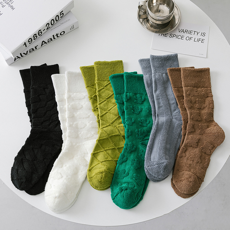 グリーンソックス レディース 秋冬 厚手 綿素材 ミドル丈 インス風 おしゃれ 外履き 韓国風 万能 無地 暖かい フロアソックス