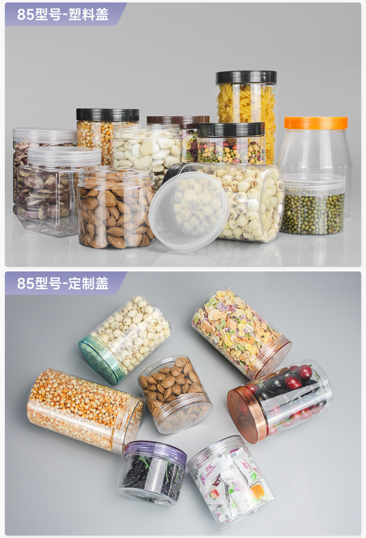 85口径高透水晶蓋プラスチックボトル卸売り家庭用密封缶使い捨て手回しねじ口径