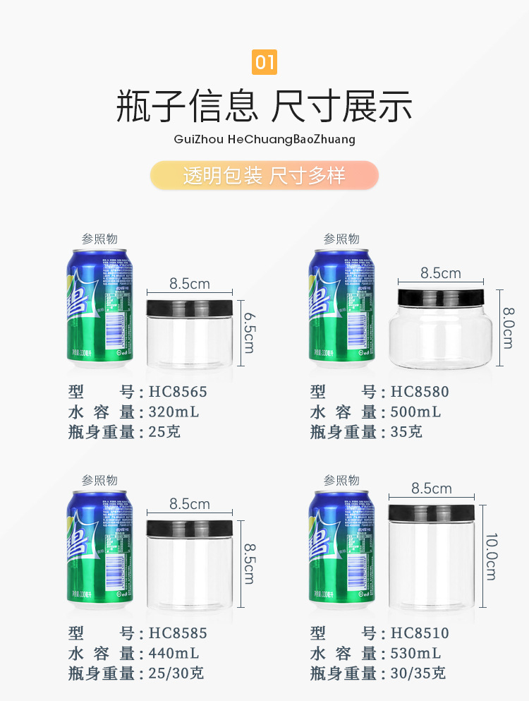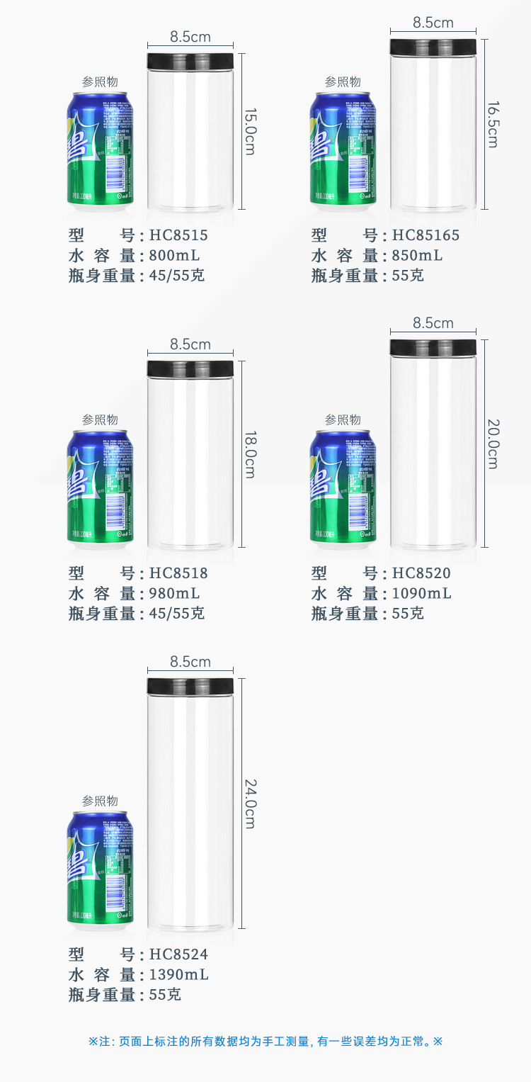 Hc85165直径85mm高さ165mm密封収納瓶センチ子苦蕎茶ドライフルーツ包装箱密封瓶
