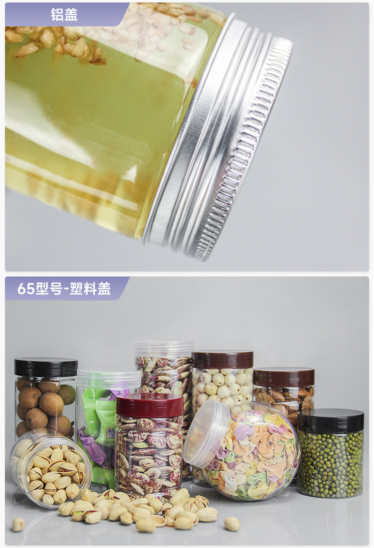 Hc8518アルミカバープラスチックボトル卸売り家庭用透明円形プラスチック缶食品缶蜂蜜瓶2斤